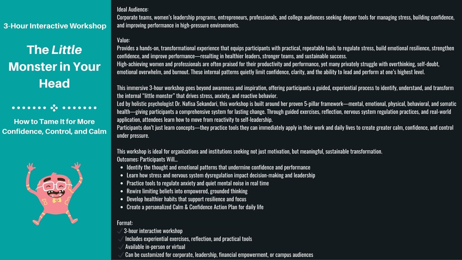 Giving individuals effective strategies to manage their mental health and heal anxiety, depression, and overwhelm creates productive and successful organizations. Â